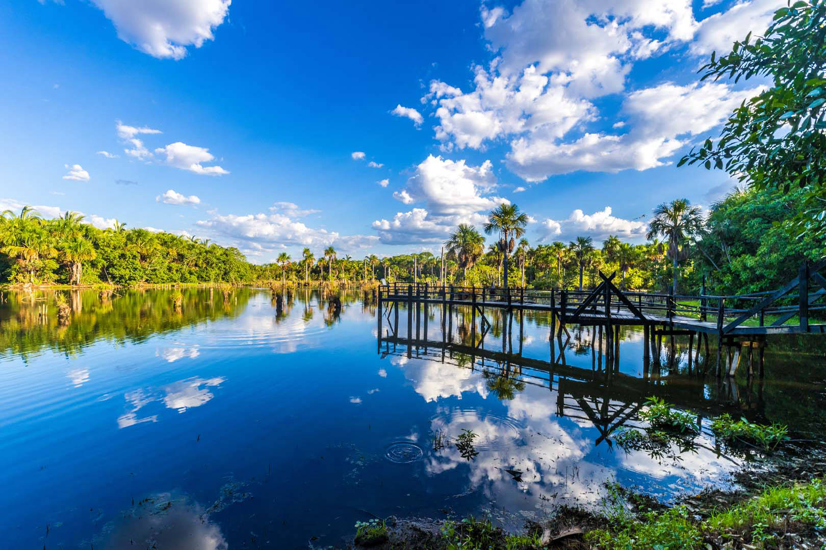 Nach dem Frühstück geht es los in Richtung Poconé. Auf dem Weg machen wir einen Tankstellenstopp, um einen Happen zu essen oder einen stärkenden Kaffee zu trinken. Nachdem wir die ehemalige Goldgräberstadt Poconé hinter uns gelassen haben, geht es weiter auf der weltberühmten Transpantaneira bis zur UeSo Pantanal Lodge. Unterwegs legen wir einige Zwischenstopps ein, um Tiere zu beobachten und die vielfältige Pflanzenwelt zu entdecken. Nach dem Check-in in der Lodge erwartet dich ein Buffet-Mittagessen, gefolgt von einer erholsamen Ruhepause. Am späten Nachmittag unternimmst du einen Fussmarsch in die umliegenden Wälder, wo du mit etwas Glück verschiedene Vogelarten, Kapuziner- oder sogar Brüllaffen entdecken kannst. Danach gibt es ein köstliches Buffet in der Lodge.